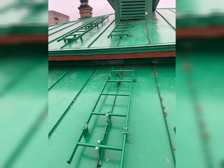 В ходе реставрации была полностью заменена стропильная система крыши с обработкой древесины огнебиозащитным составом. Также обновлено кровельное покрытие с устройством ветрозащитной мембраны, смонтирована новая водосточная система. Помимо этого, выполнено устройство вылета защитного зонтика, установлены защитное ограждение, снегозадержатели и страховочная система кровли.