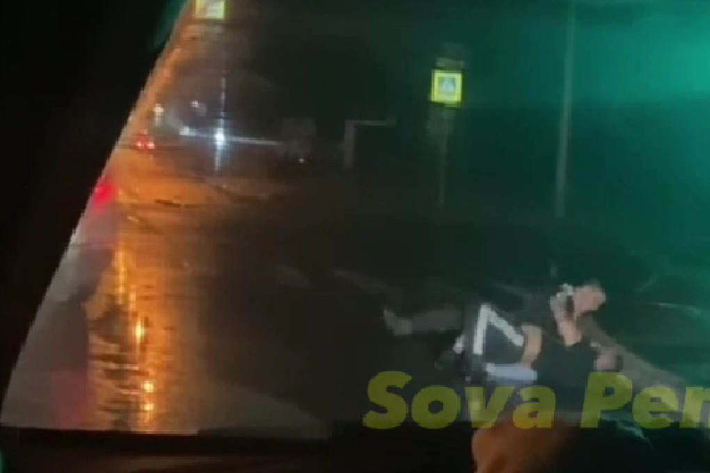 По словам очевидца, происшествие случилось в 23.50. Двое взрослых мужчин вышли из машины и, судя по кадрам видео, начали разговаривать на повышенных тонах. Совсем скоро их диалог привел к драке. Во время схватки мужчины упали на проезжую часть и сцепились в страстных объятиях, с полминуты не отпуская друг друга. Затем один все-таки смог вырваться и пытался оседлать второго.