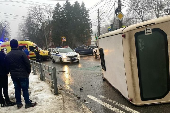 Очевидцы рассказывают, что маршрутка, следовавшая по маршруту №77, столкнулась с иномаркой, в результате чего произошло опрокидывание микроавтобуса.
