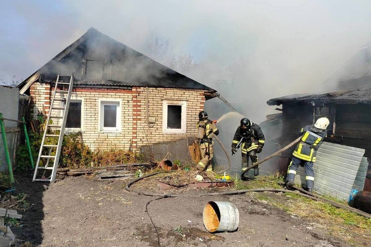 Во время борьбы с пожаром огнеборцы спасли из одного из домов женщину.
