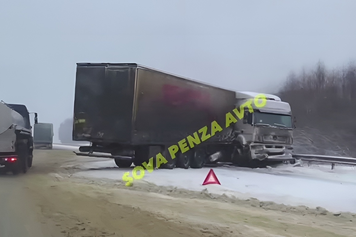 Одна из аварий с участием фуры случилась на участке трассы М-5 недалеко от села Трофимовка. Судя по всему, водитель не смог справиться с управлением, поэтому грузовик развернулся поперек дороги.