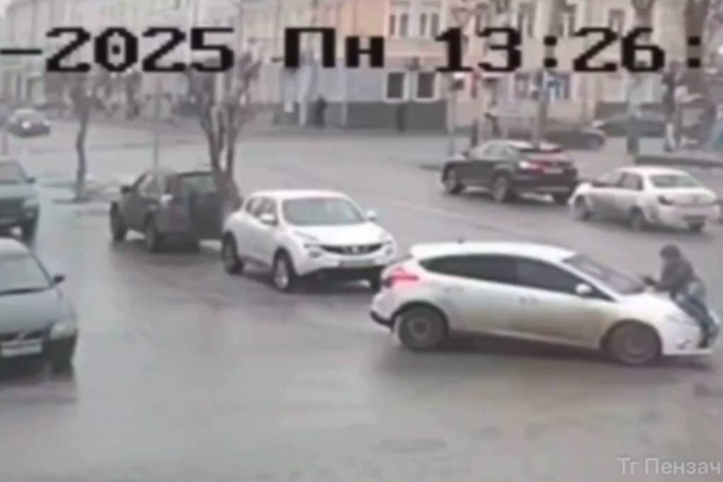 В Пензе произошёл инцидент. На улице Максима Горького мужчина встал на пути автомобиля, после чего прохожий оказался на его капоте.