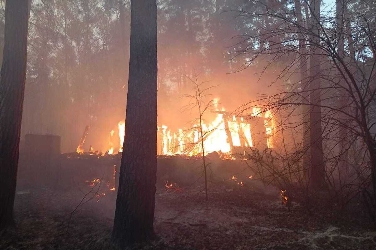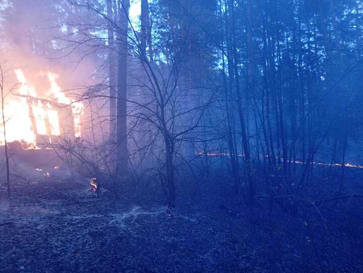 Сообщается, что пламя охватило неэксплуатируемое здание, площадь которого составила 50 квадратных метров, а также траву на площади четырехсот квадратных метров.