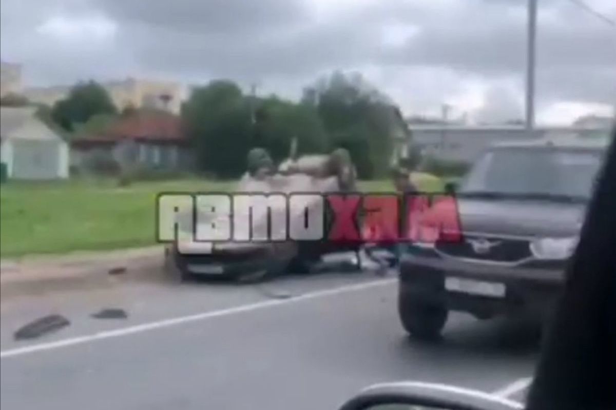 По предварительным данным, столкнулись два автомобиля. В результате удара один из них перевернулся на крышу.