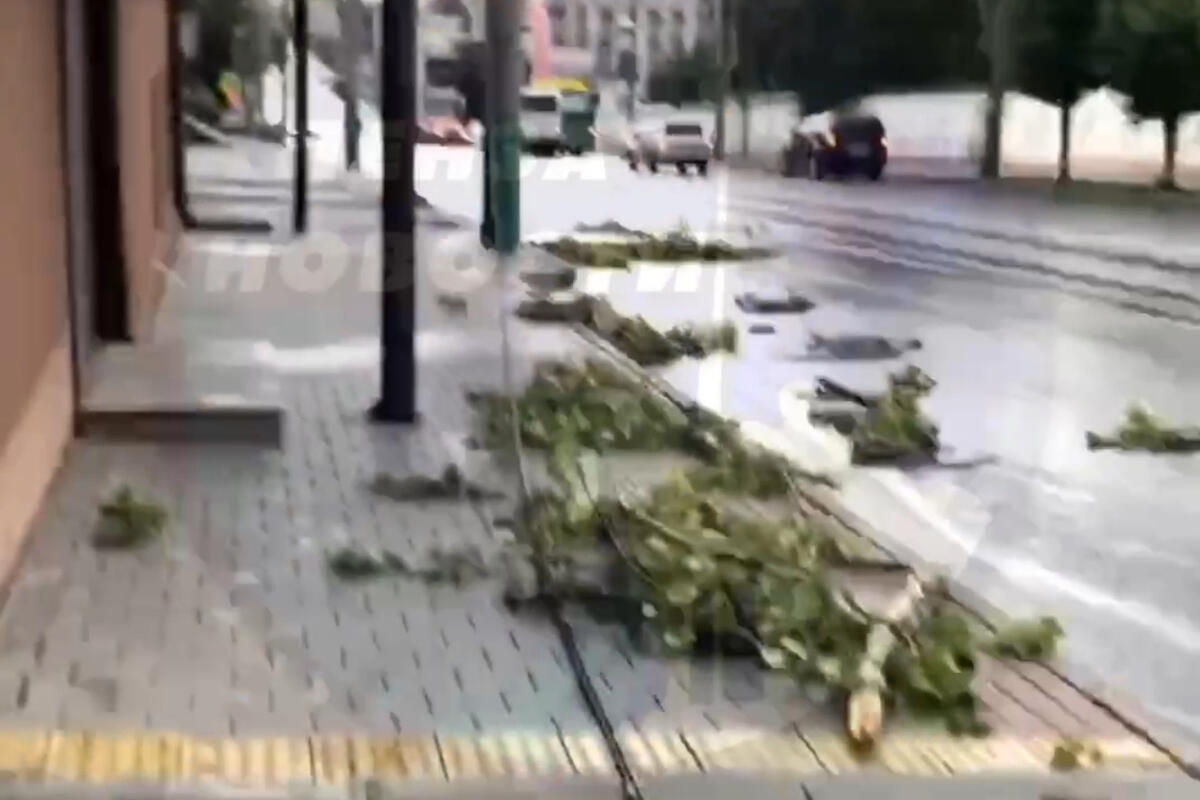 Одно из них-упавшее дерево на улице Кирова. В результате сильного ветра дерево не выдержало натиска стихии и рухнуло на провода. Сейчас упавшие ветки закрывают пешеходную зону, доставляя дискомфорт пешеходам и автомобилистам.