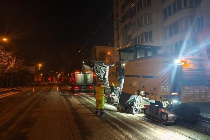 На данный момент ремонтируют дорогу на улице Свердлова на участке от улицы Калинина до Баумана. Здесь уже закончено фрезерование старого асфальта и укладка выравнивающего покрытия. Ведется установка около 25 смотровых и ливневых колодцев. После этого начнут укладывать верхний слой асфальтобетона.