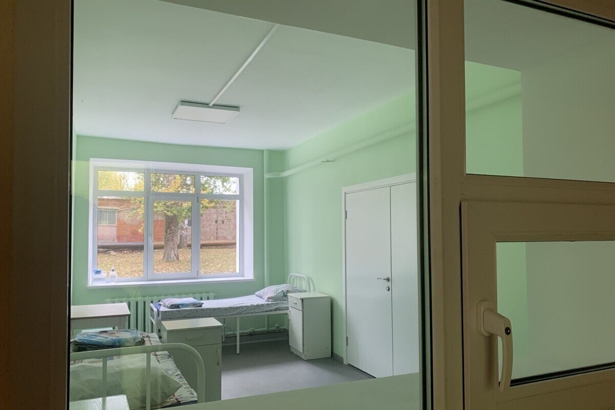 Во всех палатах и полубоксах обновлены дверные блоки и установлены современные передаточные шлюзы для питания, что позволяет минимизировать риски распространения инфекционных заболеваний. Также проведена модернизация санитарно-гигиенических помещений с установкой новых душевых кабин и современной сантехники.