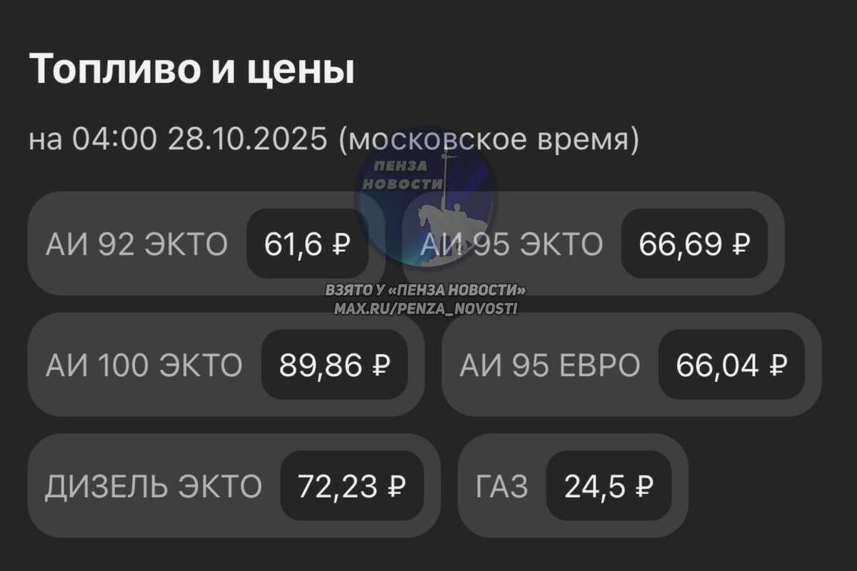 На автозаправочных станциях Пензенской области зафиксировано повышение цен на все основные виды топлива. Стоимость бензина марки АИ-92 достигла 61,6 рубля за литр, а АИ-95 - 66,69 рубля. Премиальный бензин АИ-100 теперь реализуется по 89,86 рубля за литр.