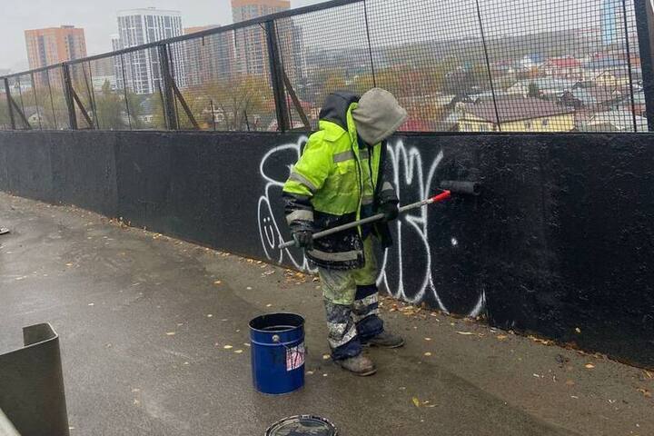 В четверг, 30 октября, сотрудники МБУ занялись наведением марафета на путепроводе 8 Марта.