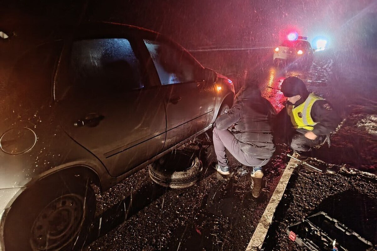 На помощь семье пришли неравнодушные прохожие: они достали инструменты из своего автомобиля и помогли заменить колесо. Автоинспекторы обеспечили безопасность на дороге, после чего семейная пара поблагодарила всех за отзывчивость и продолжила путь.
