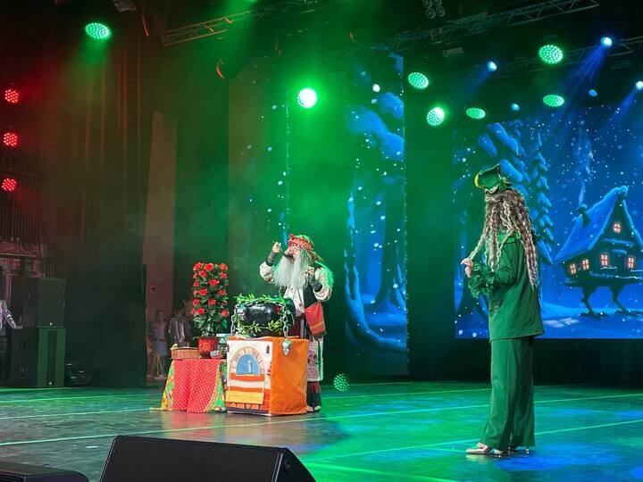 На звание правой руки зимнего волшебника претендовали самые разные сказочные персонажи. Сцена стала ареной для удивительных событий. Веселые песни и танцы из любимых мультфильмов, таких как «Ми-ми-мишки», «Синий трактор» и «Барбоскины», сменялись фантастическими представлениями.