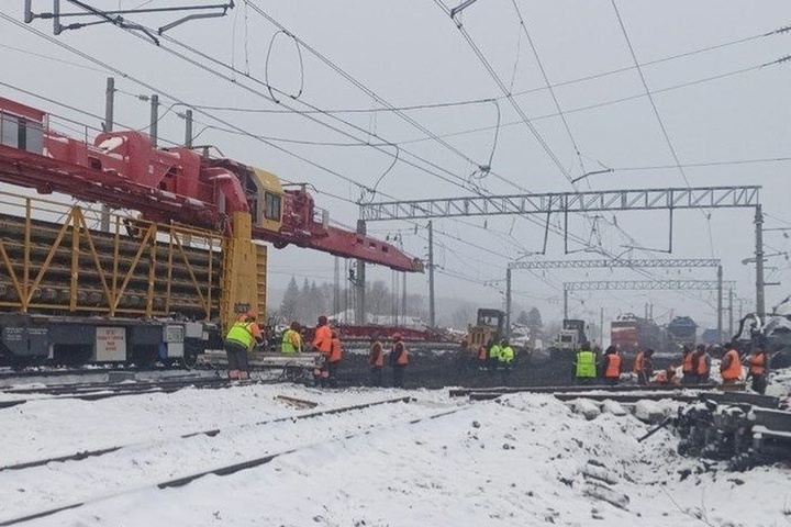 На первом пути была организована уборка загрязненного грунта, в настоящий момент продолжается восстановление железнодорожного полотна с помощью специализированной техники.